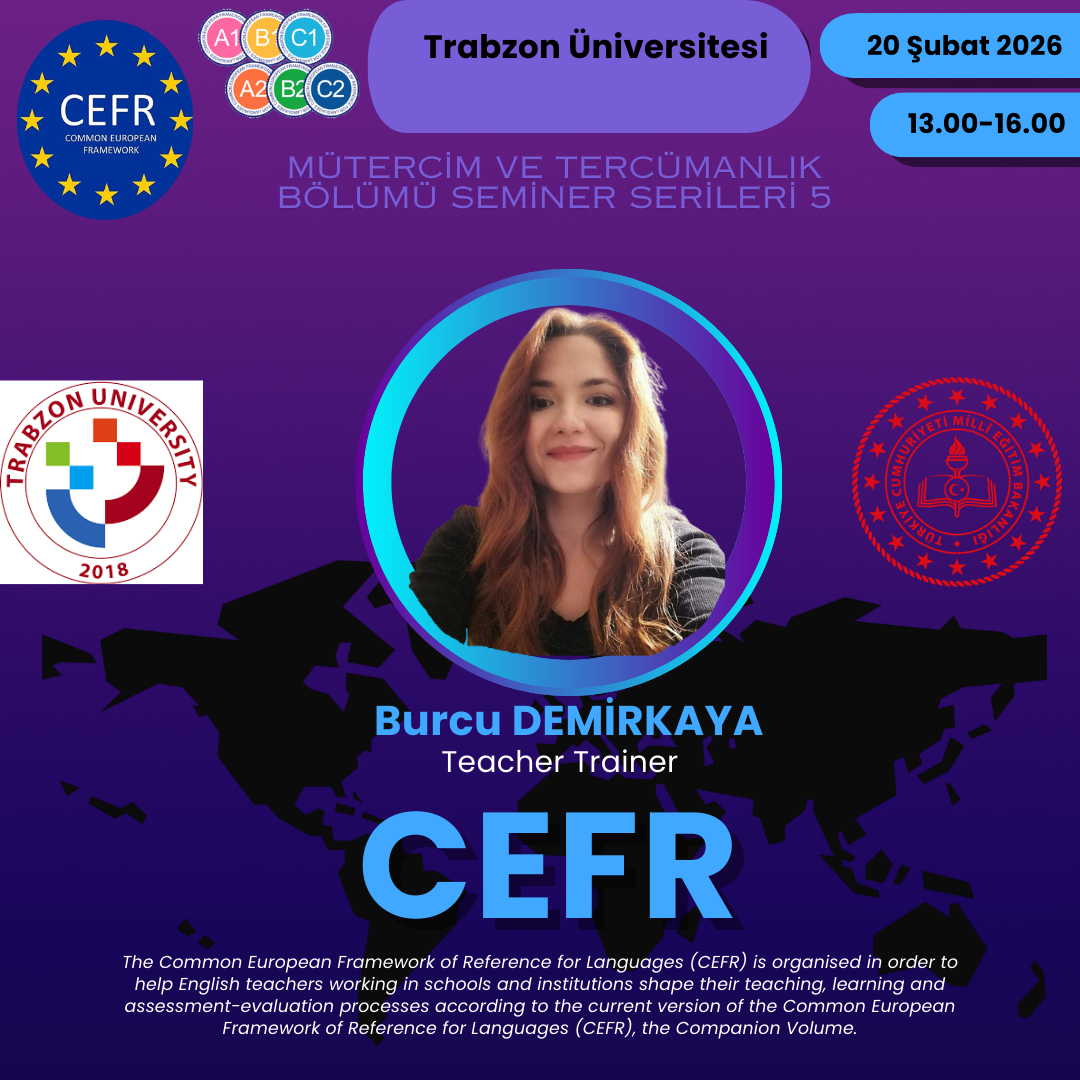 Trabzon Üniversitesi – Mütercim ve Tercümanlık Bölümü tarafından, İngilizce öğretmenlerinin ders planlama, öğretim ve ölçme-değerlendirme süreçlerini güncel CEFR (Common European Framework of Reference for Languages) ve CEFR Companion Volume doğrultusunda geliştirmelerini desteklemek amacıyla bir eğitim etkinliği düzenlenecektir.